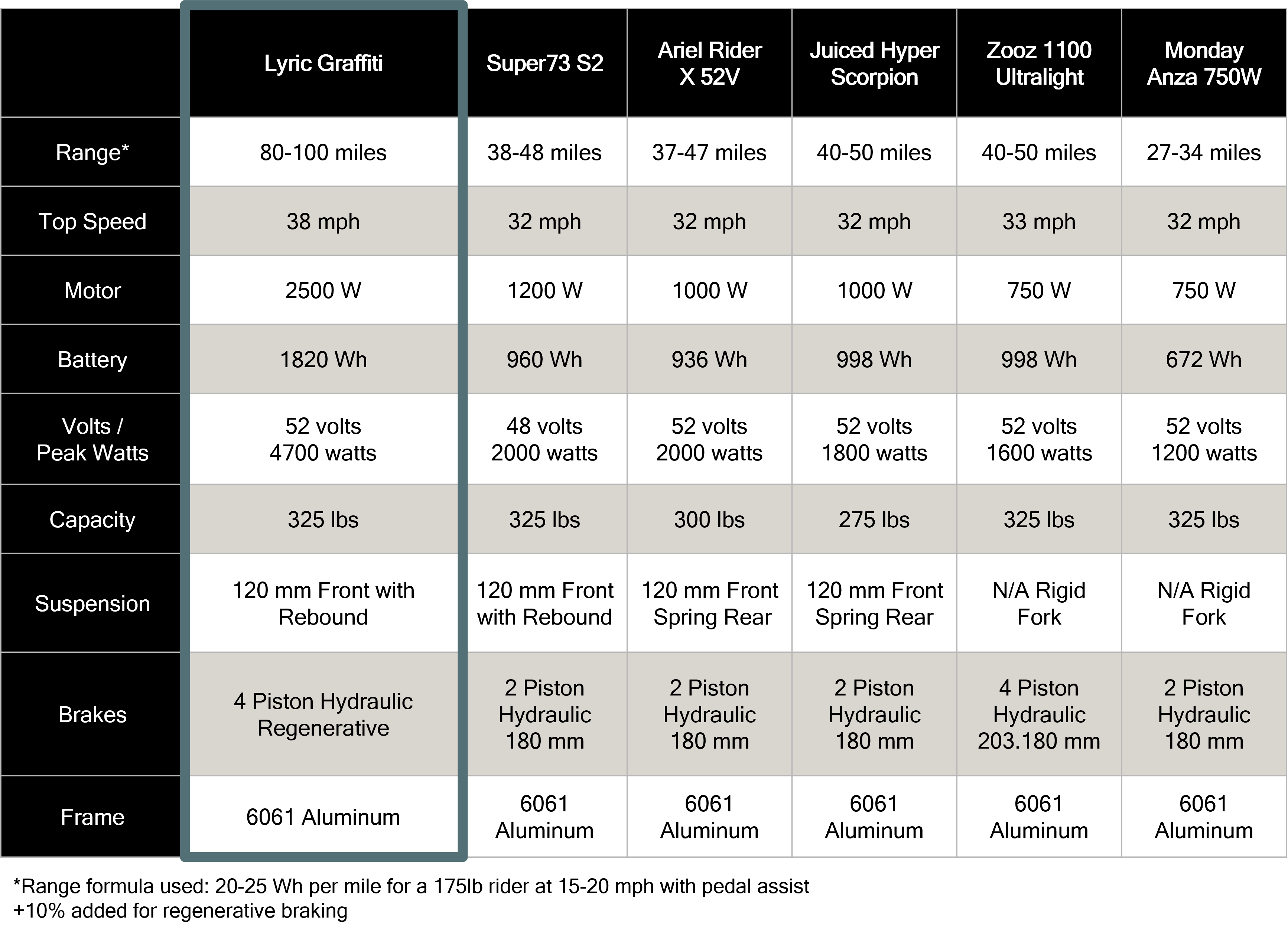 The Graffiti rocks an adrenaline-inducing 2500 watt hub-drive motor. With more than double the wattage of most eBikes, you’ll blast off the line, and your friends will need an upgrade just to keep up.